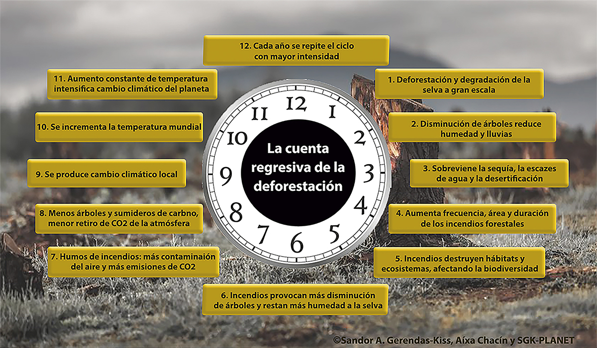 El Reloj de la deforestación no es un reloj que marca las horas, ni los 12 dígitos indican los 12 meses del año.