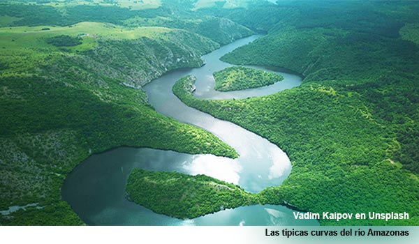 Esto se origina a que la gran mayoría del curso el Amazonas posee una pendiente sumamente baja. Desde Iquitos hasta su desembocadura en el Atlántico el río desciende apenas unos 106 m en un recorrido de 3646 km. Debido a esta lentitud es que se produce forma sinuosa del Amazonas.