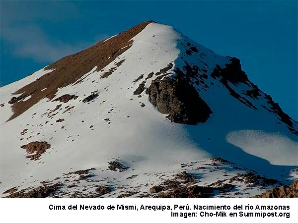 1. En parte se origina de los nevados andinos. Una parte del caudal de agua del río proviene de la fusión de los hielos del Nevado Mismi y el Nevado Quehuisha, ubicados en Perú, en la cordillera Chila y en la provincia de Arequipa, a unos 5600 metros de altura. Entre junio y octubre sus hielos se derriten y nutren al río Amazonas con un enorme caudal de agua.