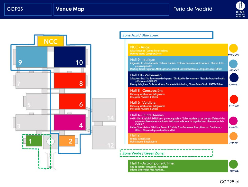 Enlace externo: Naciones Unidas Cambio Climático. COP25. Planos del recinto