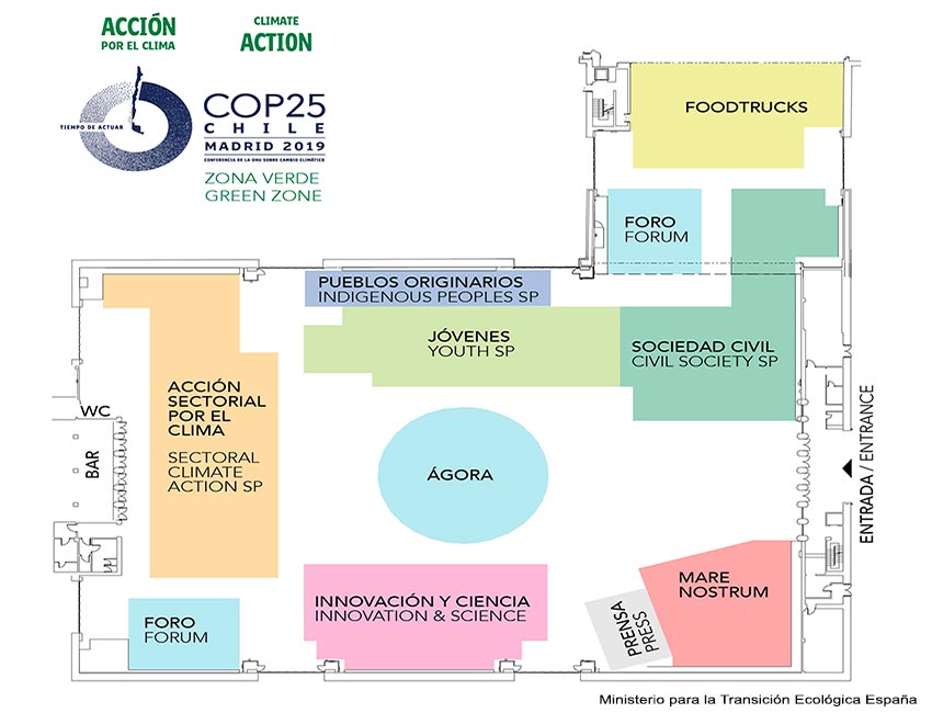 La Zona Verde es un espacio en la COP25 para que se puedan expresar de forma interactiva, participativa e inclusiva en todo lo relacionado con la acción climática. Las actividades diarias están relacionadas con las temáticas abordadas en la Zona Azul de la COP25 , con la intención de conectar los dos espacios.
