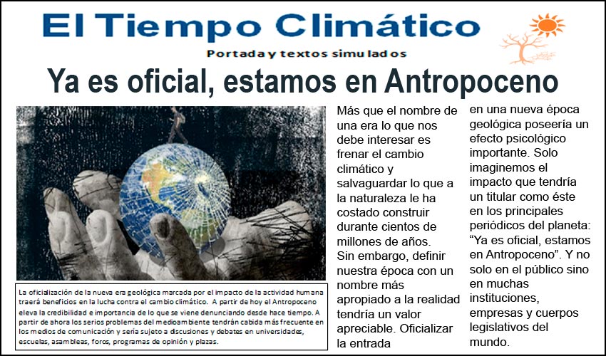 Para que un cambio de época geológica sea aceptado deben cumplir ciertos cánones establecidos por la nomenclatura de la geología. Sin embargo, el concepto Antropoceno, de hecho está aceptado porque circula por libros y miles de medios.