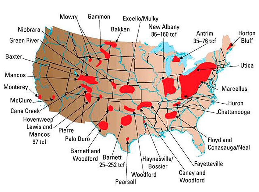 “En Estados Unidos, unos 750 compuestos químicos se utilizan como aditivos en la fractura hidráulica, según un informe presentado en el Congreso Estadounidense por el Partido Demócrata, publicado en 2011, tras haber sido mantenido en secreto por «razones comerciales».  (Wikipedia).