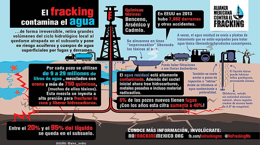 Sostienen que el auge del fracking contraviene el Acuerdo de París, al enviar enormes cantidades de CO2 a la atmósfera, por el uso de combustibles fósiles. Denuncian el impacto medioambiental de la fracturación hidráulica, como la contaminación de acuíferos, suelos, aguas y aire, elevado consumo de agua, retorno de los gases y químicos utilizados hacia la superficie, además de probables efectos en la salud. También señalan casos de incremento en la actividad sísmica.