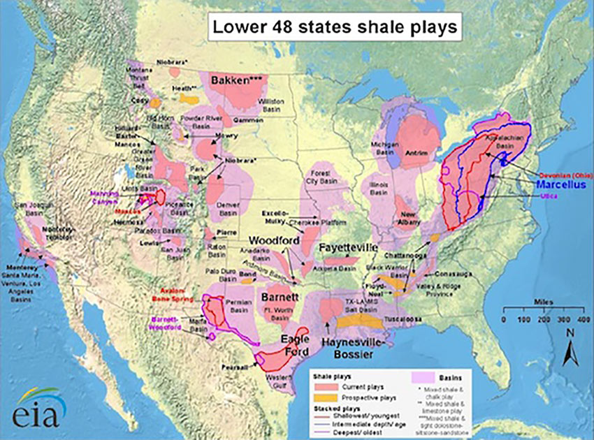 Existen cerca 45 países con reservas probadas o probables de esquistos, pero no todos son explotables, algunos por razones técnicas y otros por la baja calidad de los hidrocarburos