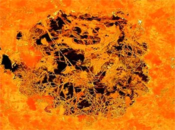 Representación artística de la formación de la corteza terrestre. Fuente: Hombre Geológico – WordPress.com