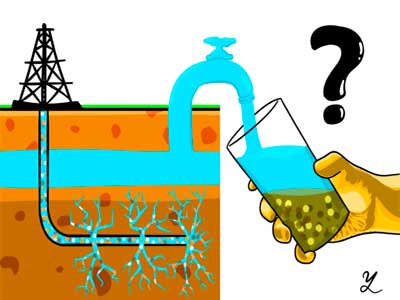 Un acuífero es un volumen de agua que se aloja bajo la superficie de la Tierra. Se encuentra en los cinco continentes. La masa total de los acuíferos es superior al agua visible de lagos y ríos. El vital líquido del subsuelo es un recurso importante, ya que provee la tercera parte del agua potable mundial. Ello explica la preocupación de los grupos ecologistas por el riesgo de su contaminación en las perforaciones profundas del fracking.