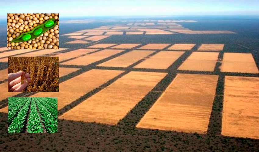 El monocultivo de soja produce efectos negativos en el suelo, como el agotamiento delos mismos y una perdida creciente de su fertilidad. La soja deja pocos restos vegetales y por tanto su aporte de materia orgánica es mínimo. El uso de maquinarias pesadas produce la compactación de los suelos y como consecuencia sobreviene la erosión.