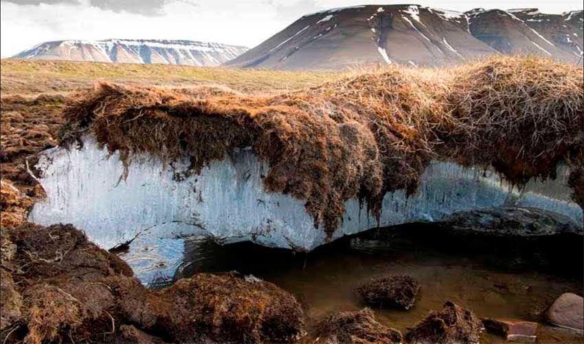 El permafrost es un suelo congelado pero sin hielo. Estos desiertos helados son extremadamente ricos en carbono orgánico, acumulados en el subsuelo durante miles de años. La tundra es un suelo de permafrost que permanece congelado todo el año. En la taiga, el suelo puede congelarse durante el invierno, pero los meses de verano son lo suficientemente cálidos como para que la superficie se descongele, aunque las partes más profundas permanecen congeladas. Con el calentamiento global en aumento se corre el riesgo de que el carbono se libere a la atmósfera, aumentando el efecto invernadero y el calentamiento global de una manera caótica.